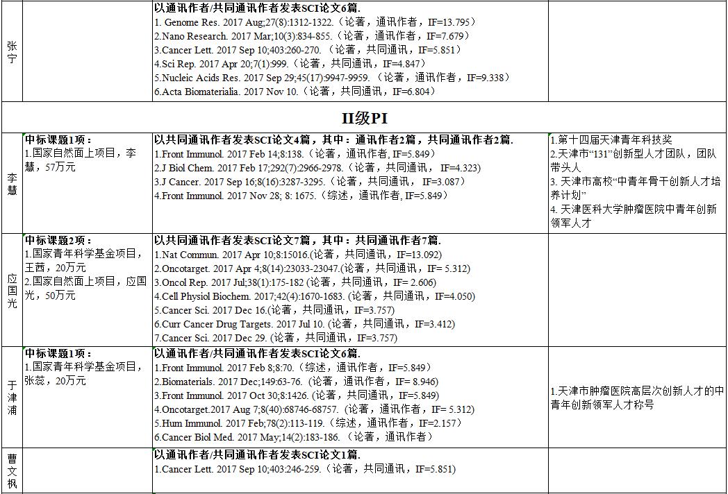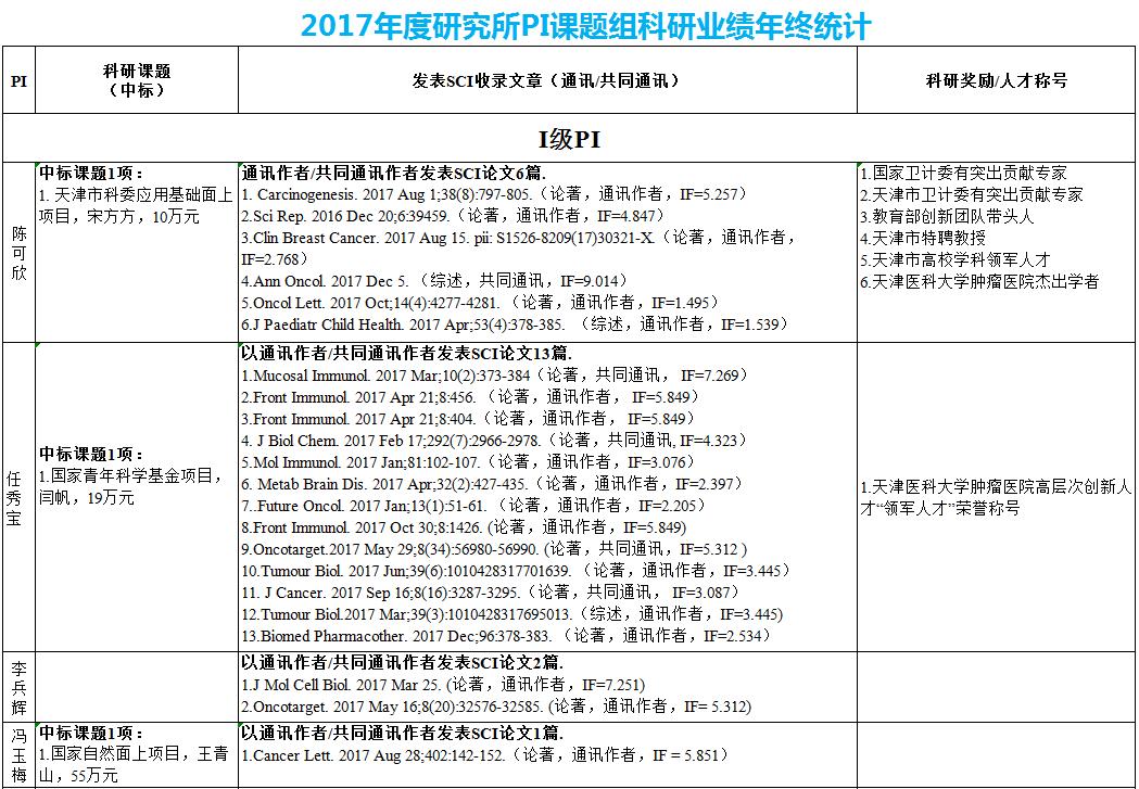 2017年度研究所PI课题组科研业绩年终统计