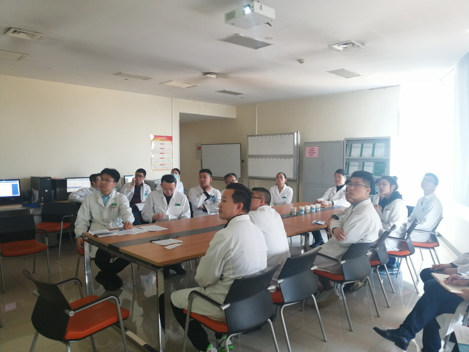 首先研究生李光浩汇报患者病史以及专科查体,查体过程中,学生查体流畅,重点突出,住院医师陈璐对查体进行了补充,主查医师张伟主任对学生触诊的手法及顺序进行了纠正和正确示范。