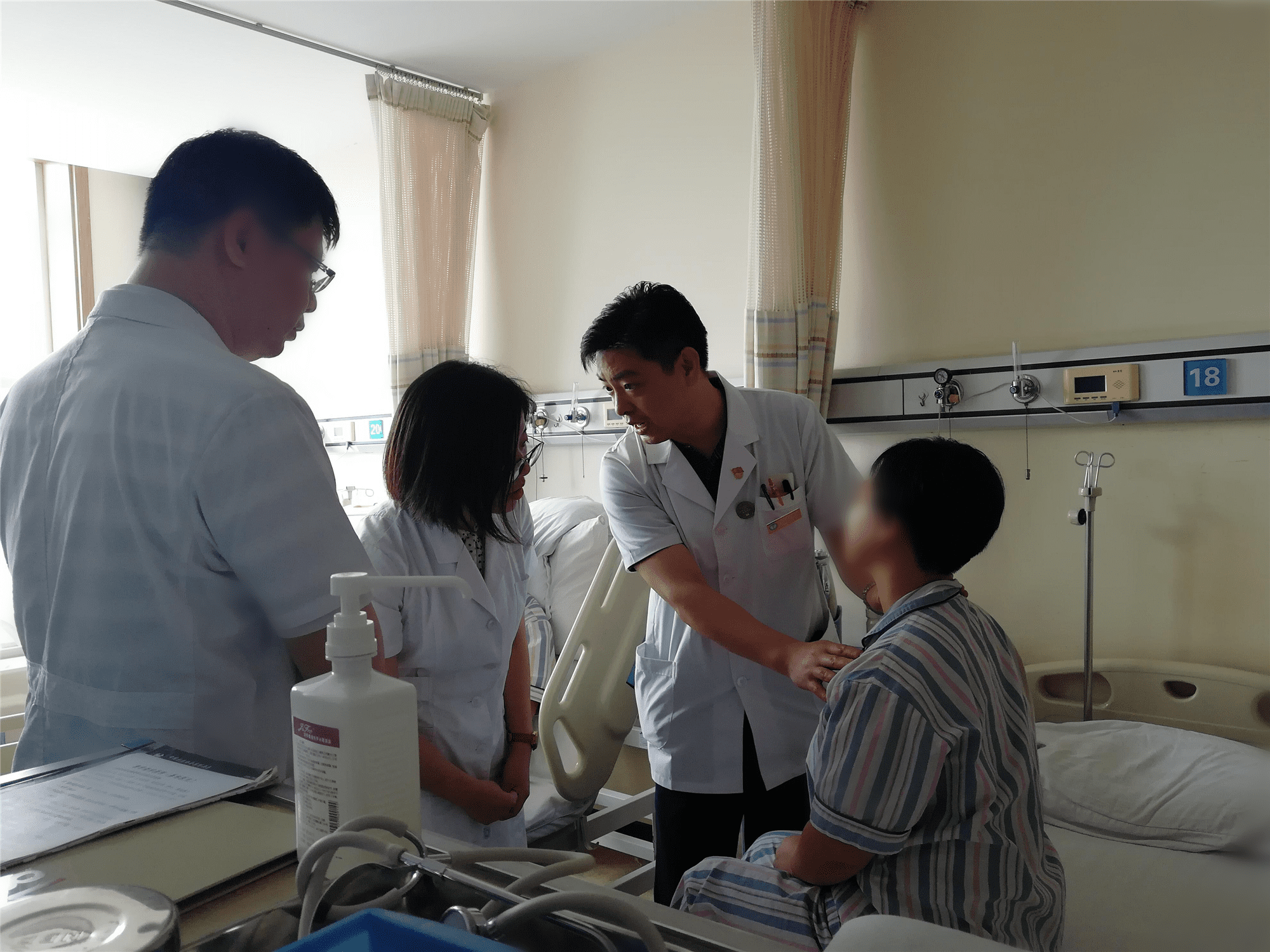 随后,王会娟对患者进行了望、触、扣、听的专科查体,郑向前主任针对学生的床旁查体给予了纠正并进行规范的示教。