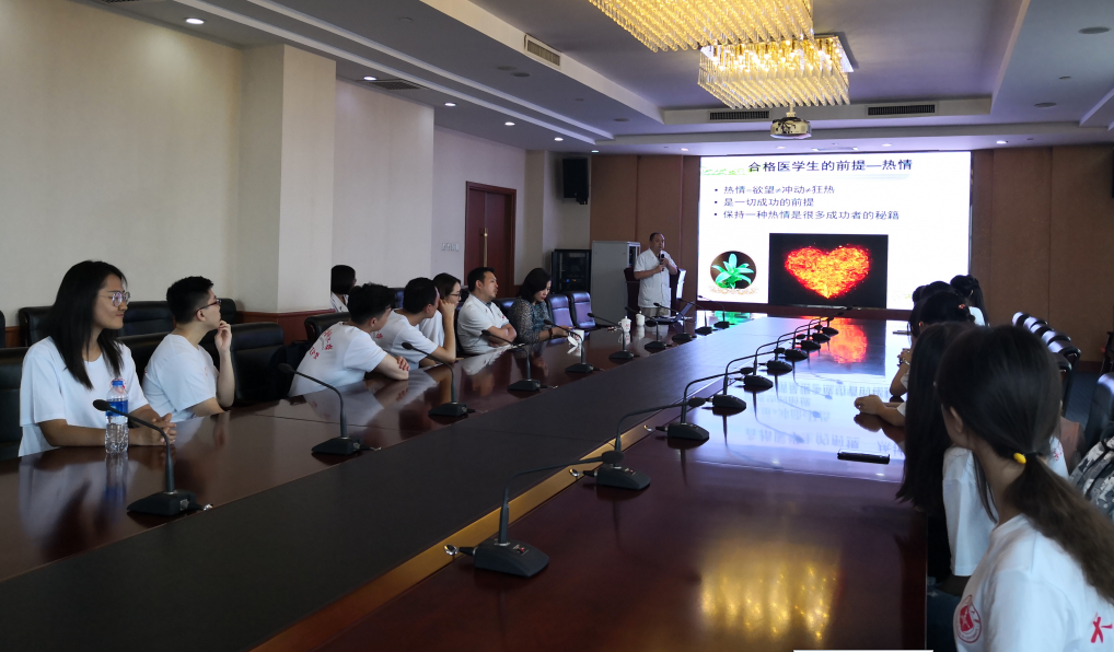 Ⅰ期临床病房科主任史业辉主任为营员们上了一堂“如何做一名合格的医学生”的职业规划课,他指出保持热情是做合格医学生的前提,提高能力是做合格医学生的基础,坚韧不拔是做合格医学生的保障,希望所有营员在未来的研究生学习阶段能够“轻松生活、努力工作、感情和睦、身心健康”。