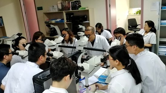 作为病理培训第一期项目,天津医科大学肿瘤医院乳腺病理团队以“理论与实战”为主题,设立了理论授课、冰冻实战演示、疑难病理讨论三种交流形式。