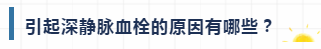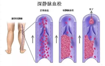 深静脉血栓形成主要有三大原因:血管壁损伤、血液流速缓慢、血液粘稠度增高。