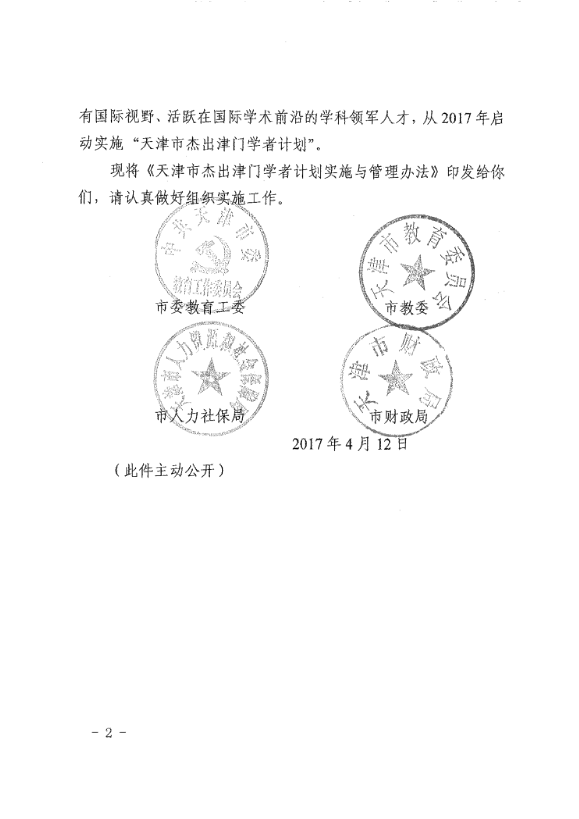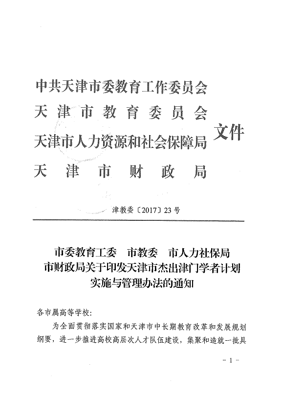 市委教育工委 市教委 市人力社保局市财政局关于印发天津市杰出津门学者计划实施与管理办法的通知