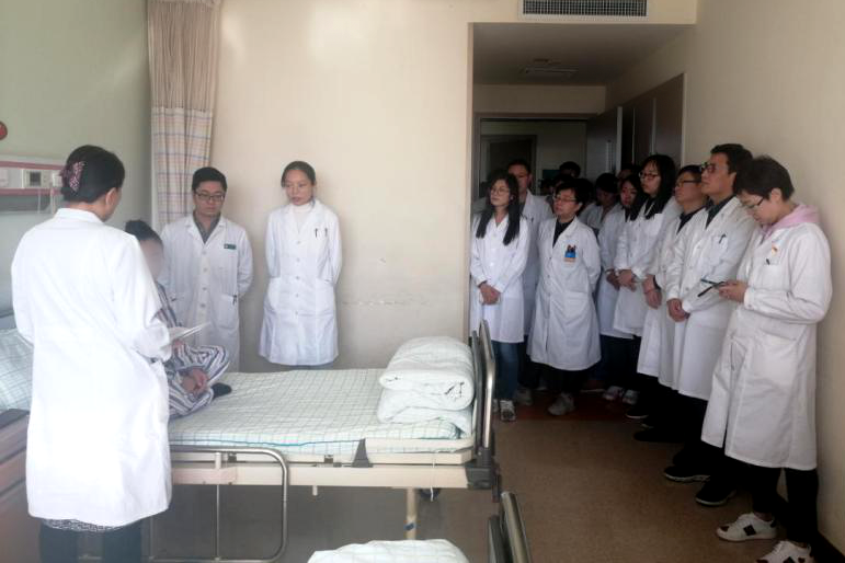 床旁查体结束后,郝春芳主任紧密结合病例针对病史采集,体格检查,初步诊断等方面进行分析,结合病例的特殊性与同学们展开讨论,突出重点难点。在整个讨论过程中,郝主任用启发式教学,以问题为引导,调动学生的积极性,培养他们独立临床思维和诊治疾病的能力。整个教学查房过程规范有序,讲解精彩,师生讨论互动热烈。