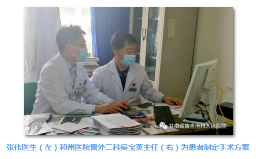 在完成援甘任务过程中,为提高帮扶州医院整体外科技术,张伟协助甘南州人民医院引进“IQQA精准手术规划智能云终端”,该终端为甘肃省首次引进,填补了甘肃省的空白。为进一步降低患者手术风险,术前张伟与甘南州人民医院普外二科候宝英主任的团队精诚合作,利用该终端三维可视化的规划系统,计算出标准肝体积和残留肝体积,为患者制定了更为精准的手术方案。