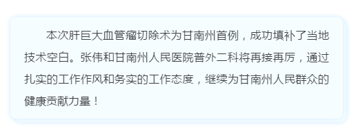 我院援甘专家肝胆肿瘤科副主任医师张伟接诊后,为患者完善相关检查。考虑到肝巨大血管瘤切除在该院尚未开展,手术团队需要相关经验积累,张伟积极协调我院提供技术支持,通过互联网平台与甘南州人民医院进行远程会诊,对手术方案进行多学科讨论与确定。