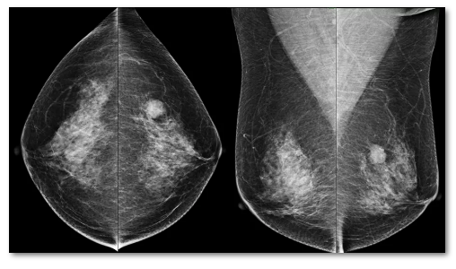 ·软组织分辨率高,对发现乳腺病变具有较高的敏感性,特别适于观察致密型乳腺内的肿瘤;