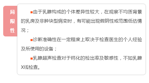 具有良好的软组织分辨力,能够清晰显示乳房及胸壁各层结构,特别是对致密型乳腺,超声检查能够发现毫米级别的小肿块,并确定病变的解剖部位和层次。乳腺超声与X线优势互补,现已成为国际普遍认可的乳腺影像检查的“黄金组合”。