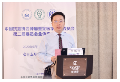 中国抗癌协会肿瘤重症医学专业委员会首届主任委员于凯江教授进行工作报告