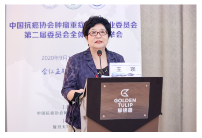 中国抗癌协会肿瘤重症医学专业委员会主任委员王东浩教授致辞中国抗癌协会秘书长王瑛教授为新一届委员会领导集体颁发证书并致辞,她在讲话中对肿瘤重症医学专业委员会工作给予充分肯定。希望在新一届专委会的带领下,肿瘤重症医学专业委员会能够更上一层楼,努力完善自身规范化建设,积极发展会员,承担政府职能,在学术上、科普上和社会服务方面发挥更大的作用。