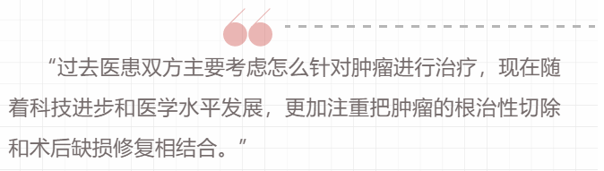 但目前国内仅有部分医疗资源发达地区能够开展肿瘤整形外科技术,多数基层医院没有整形外科医生,也缺乏开展肿瘤整形外科的技术条件,在肿瘤切除后的修复方面有较大的局限性。部分肿瘤患者会考虑术后缺损对生活质量的影响,不愿选择完整切除肿瘤,甚至有可能选择放弃手术治疗。还有部分患者不能在手术切除肿瘤的同时就即刻开展修复,后又因为缺损部位的血运、形状等发生改变,错失整形修复的最佳时机。