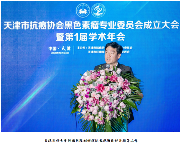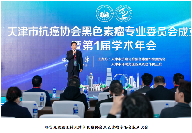 2020年10月24日,天津市抗癌协会黑色素瘤专业委员会成立并成功举办第一届学术年会。新成立的天津市抗癌协会黑色素瘤专业委员会挂靠在天津医科大学肿瘤医院,杨蕴教授和任秀宝教授担任荣誉主任委员,杨吉龙教授担任第一届主任委员。