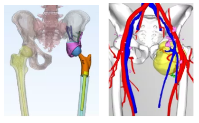 杨吉龙主任团队利用三维数字化重建及3D建模技术首先建立了肿瘤的3D模型,并利用3D模型进行了计算机模拟的肿瘤切除,确定了安全的手术边界,并精准定制用于重建的半骨盆及髋关节。