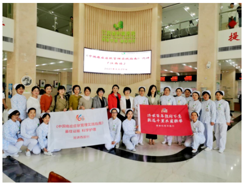 2021年是十四五开局之年,是中国共产党成立100周年,为巩固脱贫攻坚的成果,天津医科大学肿瘤医院护理部积极推动医院“济世惠民,百六十年——健康红色中国行”活动。4月28日-30日,副院长黑静带队,带领护理部主任强万敏、副主任赵静及相关护理骨干及医务处、静脉配制中心干部等一行10人,赴江西省肿瘤医院组织以“济世百年敦行不怠,致远万里共襄盛举”为主题的“健康红色中国行”活动,开展《中国癌症症状管理实践指南》(后简称“指南”)西部行巡讲及学习交流活动。