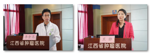 江西省肿瘤医院护理部副主任洪金花主持《中国癌症症状管理实践指南》巡讲会。徐宝兰主任、李金高副书记、黑静副院长进行巡讲会致辞。