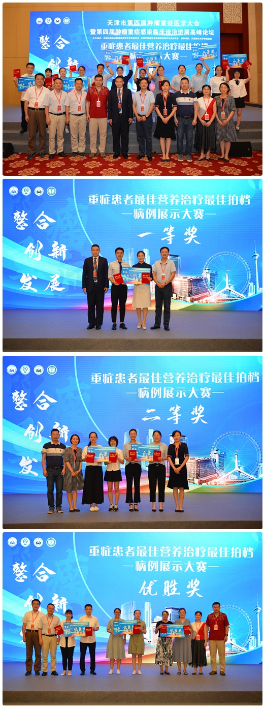 营养最佳拍档病例大赛由中国抗癌协会肿瘤重症医学专业委员会主任委员、天津医科大学肿瘤医院重症监护科科主任王东浩教授致辞,天津中医药大学第一附属医院急症部主任刘学政教授担任主持。本次大赛共吸引了来自天津市静海区医院、天津市泰达医院、天津市津南医院、天津市北辰医院、天津市宝坻区人民医院、天津市海滨人民医院共计6个代表队,12位选手参加比赛。评委由来自全国各地及天津市的重症医学、肿瘤学、护理学等相关专业的9位知名专家组成。各支参赛队伍依次汇报了精彩的营养治疗病历,现场气氛活跃。最终各队选手经过激烈角逐,来自天津市北辰区医院代表队荣获一等奖,天津市泰达医院代表队、天津市宝坻区人民医院代表队分获二等奖,天津市津南医院代表队、天津市静海区医院、天津市海滨人民医院获得三等奖。营养是重症向愈的始动力,重症是营养治疗的主战场!本次比赛的成功举办,对于提升重症医护的营养治疗水平,更新营养治疗的理念,规范营养治疗的方案以及锤炼青年医护的临场应变能力有重要意义。