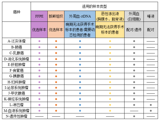 肿瘤的二代测序检测项目,原则上应当送检受累部位的样本,遗传病的检测可以选择外周血进行检测(表1)。