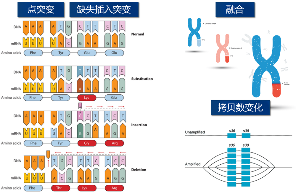 图1 基因突变类型:点突变,缺失插入,融合,拷贝数变化