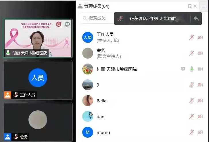 讨论环节精彩纷呈,最高在线人数64人。各位专家首先表示了乳腺癌病理报告格式化、统一化推广的必要性,并提出了实际应用中的困惑。针对导管内癌的切缘冰冻与常规病理之间的一致性,TILs评估方法的培训,新辅助治疗标本的评估方法选择等问题,大家各抒己见,讨论热烈,付丽教授并一一耐心给予解答。