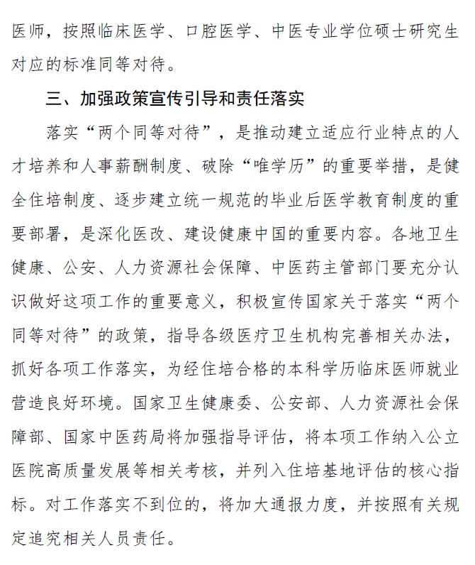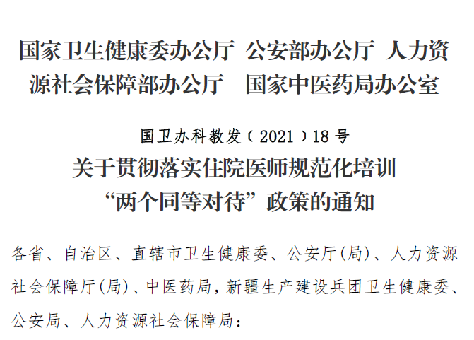转发关于贯彻落实住院医师规范化培训“两个同等对待”政策的通知