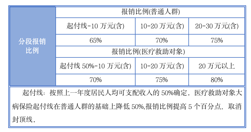 在一个年度内,参保人看病就医(含门(急)诊、住院、门诊特殊疾病),在基本医疗保险报销后,政策范围内个人负担部分的医疗费用,累计超过大病保险起付标准、30万元(含)以下部分,纳入大病保险给付范围。城乡居民大病保险、城镇职工大病保险均参照执行。