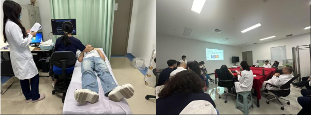 专业基地实行分层递进培训管理,基地主任重视教学管理与督导,教学主任、教学秘书及各个亚专业组负责人组成教学团队,严格按照住院医师规范化培训教学大纲内容落实培训教学。基地分为腹部、浅表器官、血管、妇产、心脏、介入和小儿等7个超声亚专业。组长均为副主任医师及以上职称,专业素质过硬,临床经验丰富。实施分层递进式教学,针对不同年级学员采用不同培训方式学习课程。课程内容根据住院医师特点,兼顾基础教学与实践操作带教,培养学员临床思维能力以及终生学习能力。