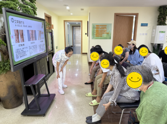 在活动中,医护人员以端午节“悬挂艾草以避邪”的传统习俗为切入点,生动地向患者们介绍了夏季养生的关键点,并强调了中医“顺应自然规律”的核心理念。特别地,他们还介绍了“拍八虚”的保健技巧,示范了如何通过拍打经络来促进血液循环;同时,重点讲解了“足三里”穴位的健脾强身作用,并指导患者在日常生活中进行按压,以助于肠道功能的恢复。