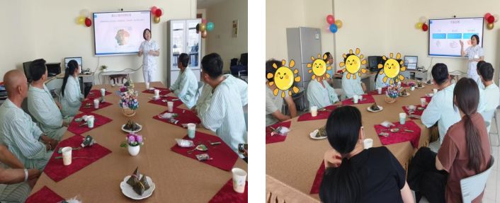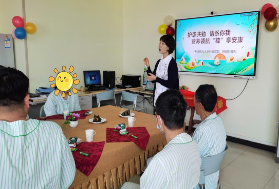 在活动中,科室带教护士王欢以端午节的粽子为切入点,深入解读了肿瘤病人的营养支持治疗指南。副主任护师王颖则针对肺癌患者术后饮食提供了专业的指导讲座。她不仅详细讲解了粽子的食材,还将其与术后饮食相结合,解答了患者关于饮食的常见疑问,强调了合理饮食在术后康复过程中的重要性。
