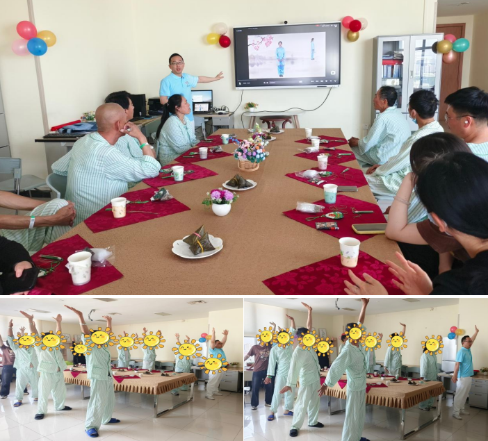 八段锦,作为中国传统保健养生功法的瑰宝,它巧妙地融合了中医的经络学与导引吐纳法,具有调和气血、疏通经络、增强免疫力的显著功效。科室兼职社工边冠军带领患者们体验了这一功法的魅力及其独特的调和作用,患者们均表现出积极地参与态度。