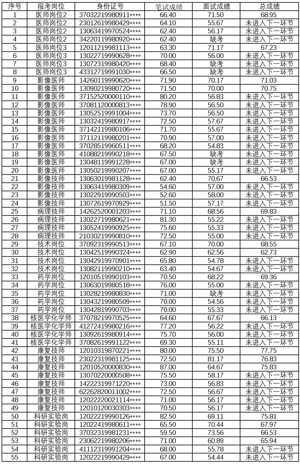【2025年人事代理制招聘补录】天津医科大学肿瘤医院2025年第二批人事代理制工作人员招聘成绩